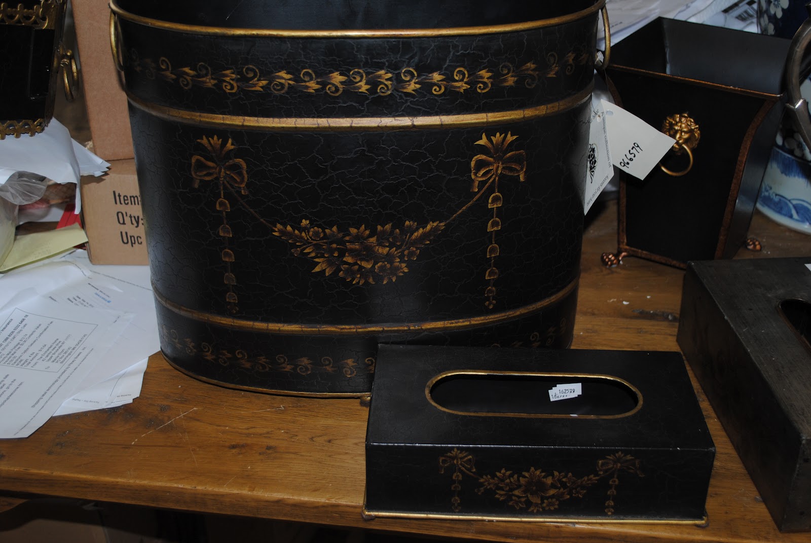 And you know my penchant for black...these GORGEOUS black tole pieces make my heart sing.......thankfully I got two of many of them and you know I have my own little 'stash", to me EVERY room looks better with a touch of black......