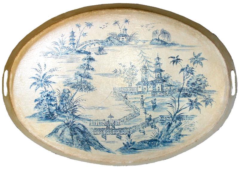 I have never seen so many beautiful tole pieces in one place. I am really having a hard time deciding which piece I like the most. I think I am going to choose the gorgeous blue and white tray. I collect blue and white and would love to add this to my collection.